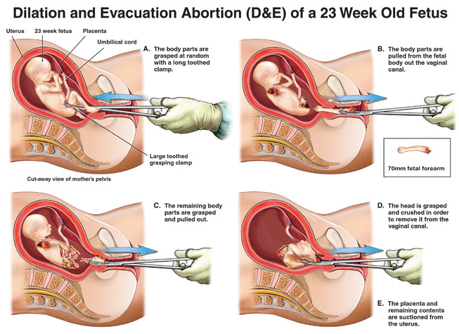 On the day of the actual procedure, the abortionist reaches in with forceps and extracts the baby piece by piece, pulling off arms and legs, then extracting the torso, and then, in the final step, crushing and removing the baby’s head.